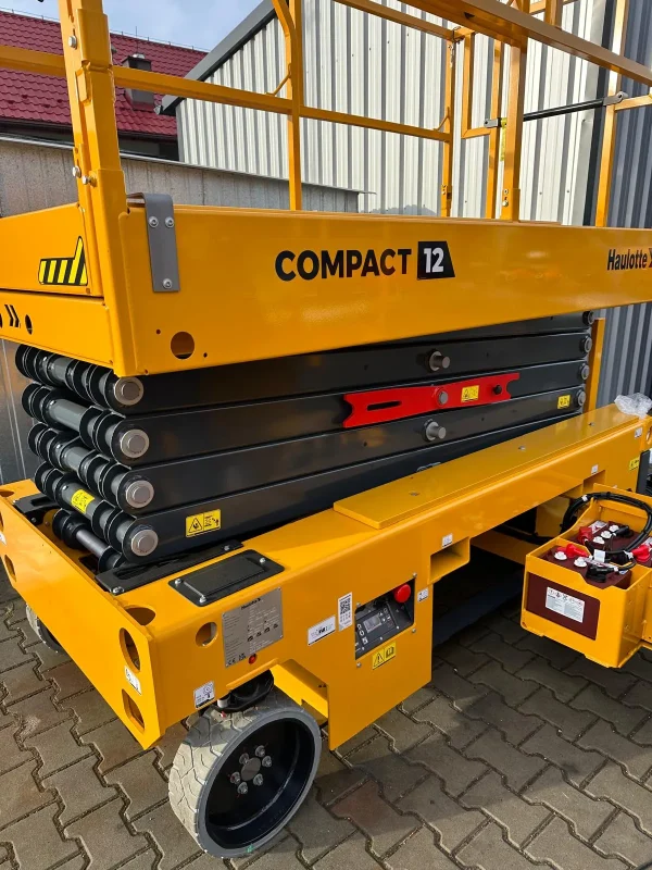 Haulotte COMPACT 12 AE to elektryczny podnośnik nożycowy, zaprojektowany do efektywnej pracy na wysokości w ograniczonych przestrzeniach. Dzięki kompaktowym wymiarom, zaawansowanym funkcjom i wysokiej wydajności, model ten zapewnia bezpieczeństwo i komfort pracy operatora